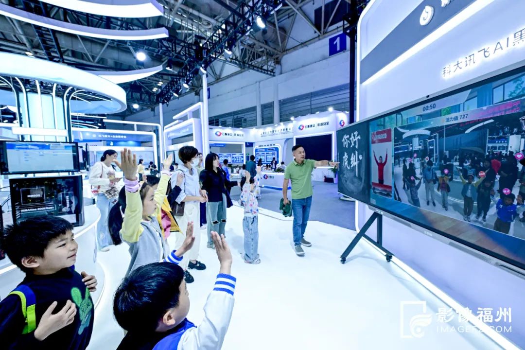 小朋友跟着科大讯飞的AI黑板做操 石美祥/摄